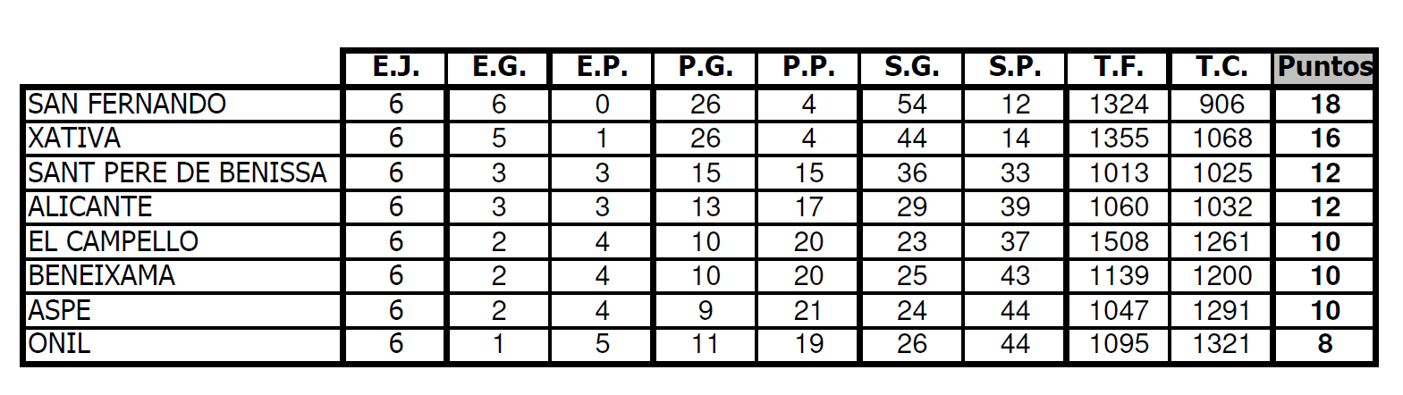 Después de esta cuarta jornada de la Liga Autonómica de Clubes la clasificación queda de la siguiente forma: