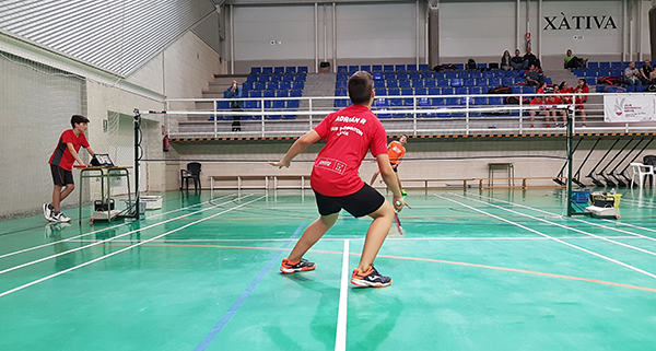 Por último, en la prueba de dobles teníamos a tres parejas representando al C.B Xàtiva, en el grupo A los hermanos Alex y Carla Pérez lograban un puesto en la disputa del bronce y en el grupo B se enfrentarían entre si, la pareja formada por Hugo Medina y Jaume Tur y la compuesta por Vicent Molina y David Polop, en un partido de 36 minutos que se decantó del lado de David y Vicent por un 21-18 y 21-16.